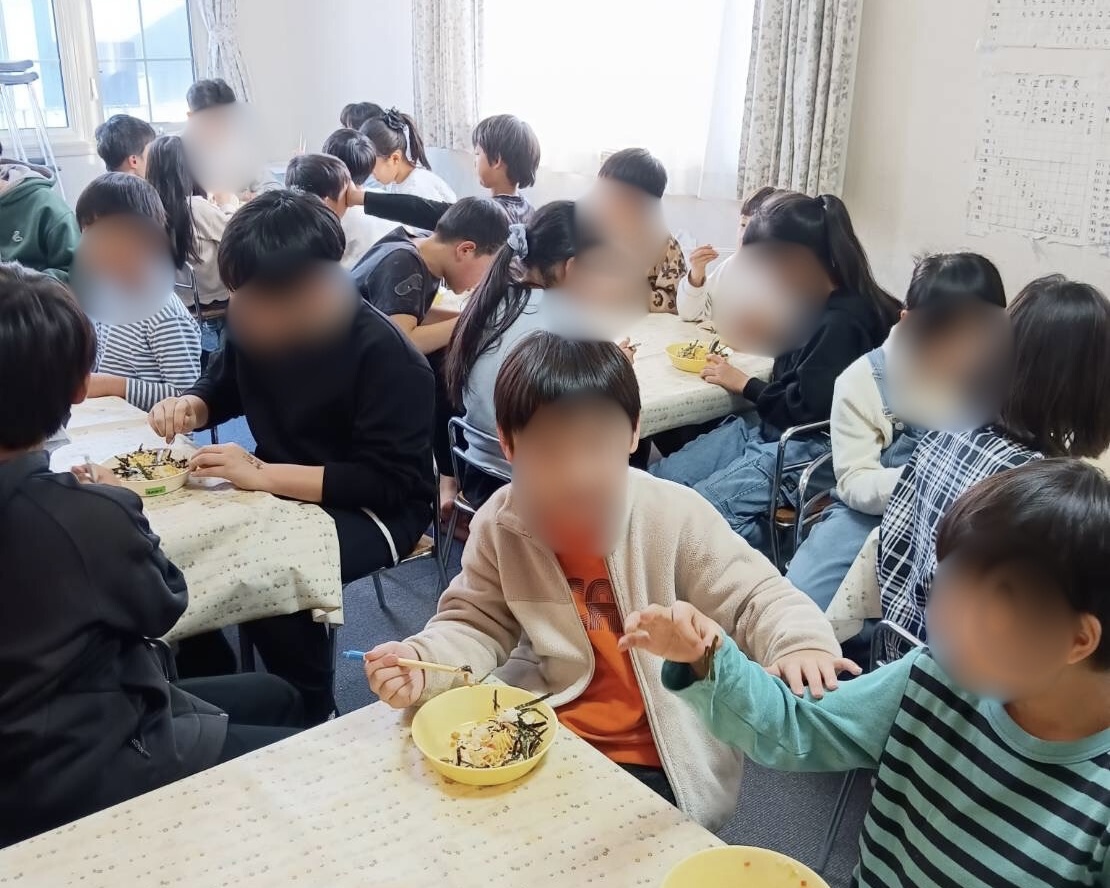 2026年1月18日(日) 第九回こども食堂を開催しました。こども食堂と合わせて地域の方との交流も兼ねて今年もお餅つきをしました。寒空でしたが天候に恵まれ、外で食べるつきたてのお餅は絶品でした。臼と杵を使った餅つき体験ができるのも貴重な機会でした。こどもも大人もおかわりをしておなかいっぱい!