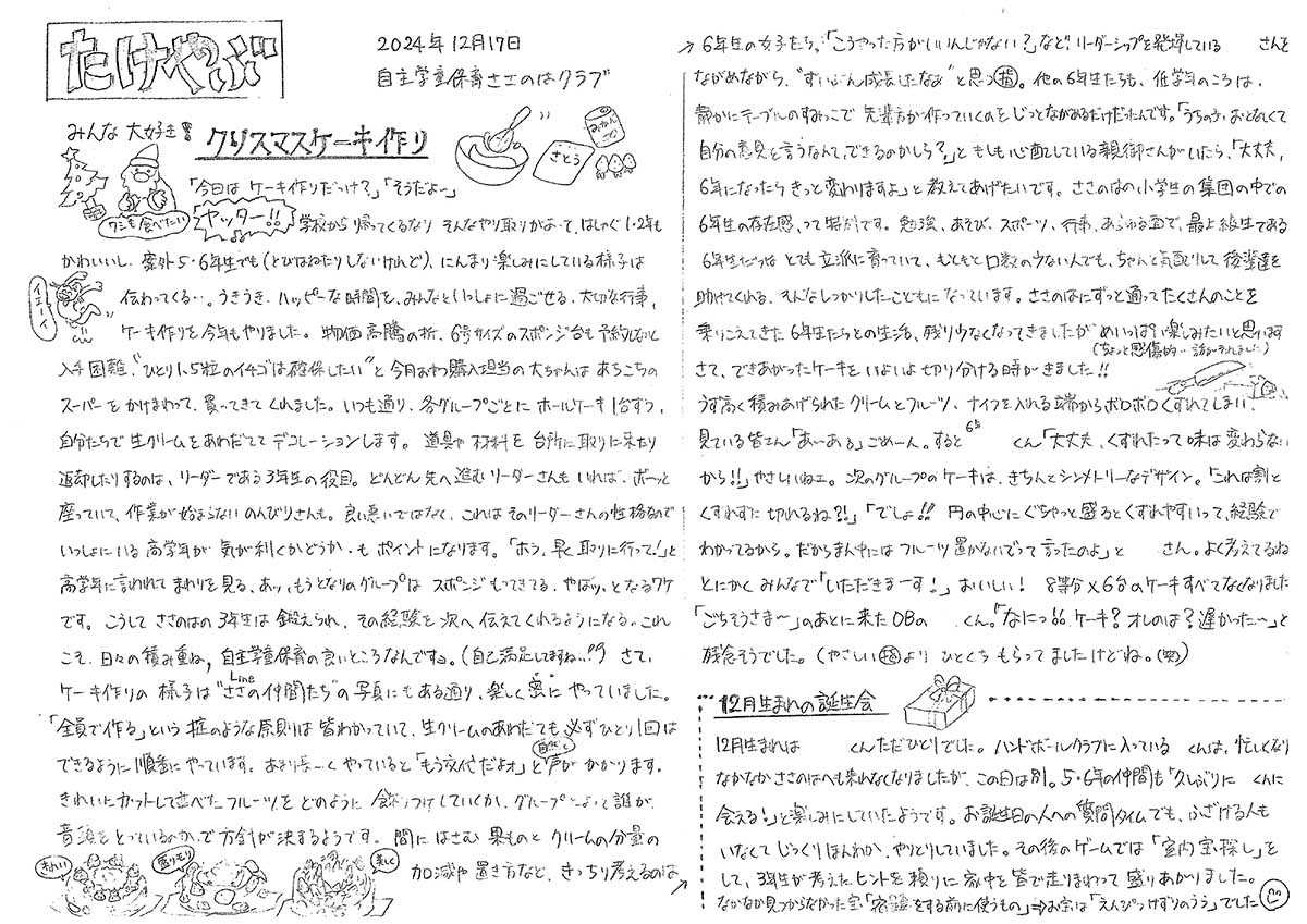楽しいクリスマスケーキ作りの様子です。