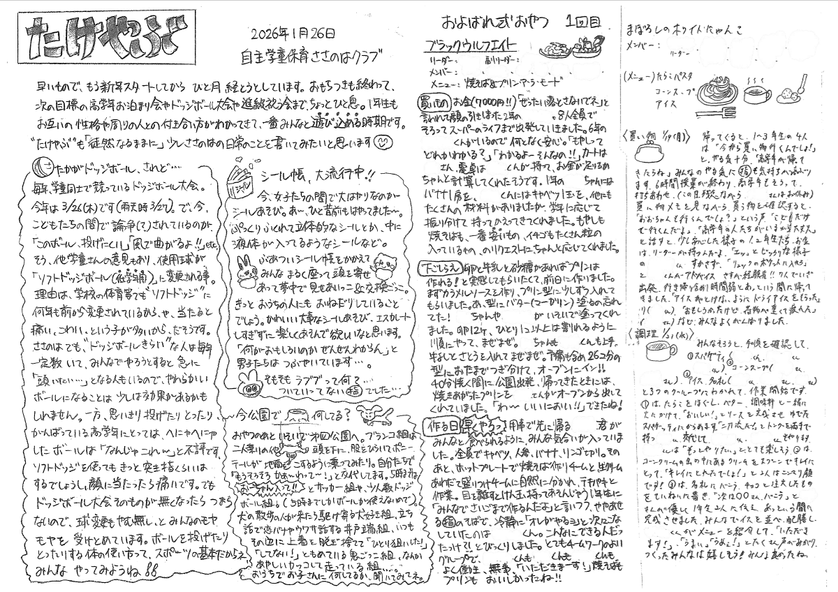 およばれ式おやつとみんなの様子です